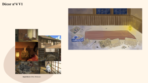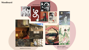 Ce visual novel est un projet réalisé dans le cadre de mes cours de deuxième année en DNMADE graphisme spécialité narration et interactivité. Dans ce jeu, on suit le narrateur, un Yokai nommé Rokurokubi pour découvrir les œuvres de l’artiste japonais Hokusai. Vous pouvez voir ci-dessous les différentes étapes de la recherche accompagnées de légendes.