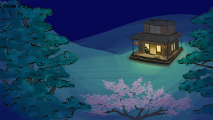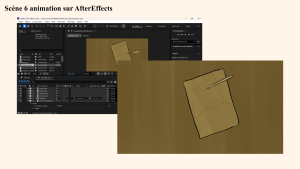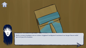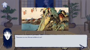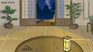 Le jeu a été réalisé sur le logiciel GDevelop, mais une courte animation a été réalisée sur AfterEffects. Le Yokai se présente puis nous emmène dans son périple jusqu’à la maison de Hokusai pour nous permettre de choisir entre différentes voies correspondant aux différents thèmes abordés par l’artiste dans son œuvre : les paysages, l’érotisme, la botanique, le manga, les arts martiaux et le fantastique. J’ai seulement développé la voie des paysages dans laquelle le Yokai nous explique par le biais d’une petite animation le processus de réalisation d’une estampe puis nous fait découvrir les œuvres phares de l’artiste. Voici quelques captures d’écran des différentes scènes du jeu, mais vous pouvez aussi y jouer sur la plateforme itch.io en cliquant sur ce lien : https://clara-mognol.itch.io/hokusai.